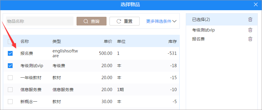 1、修改课程或班级时点击添加物品