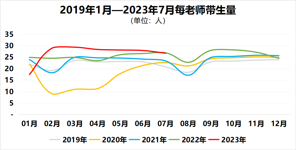 每老师带生量:每位老师带了多少位学员,体现机构中老师的人效。