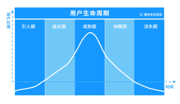 用户生命周期是互联网黑话:指一个用户从使用产品到完全离开产品的整个时间段,一般分为引入期、成长期、成熟期、休眠期和流失期。(完全适配培训学校学生生命周期。)