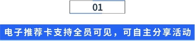 为了更方便学校做老带新活动,提高活动触达率,我们在电子推荐卡管理中增加【所有学员可见】开关,开启后,所有老学员可以自主转发分享该老带新活动。